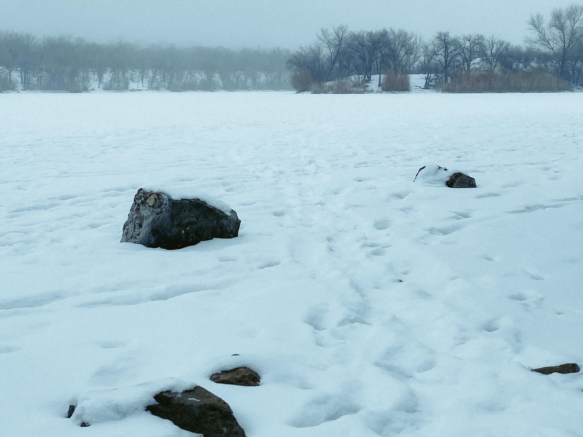 Images from the coastal zone of Volgograd, emphasizing the serene winter mood.