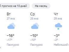 According to the forecast from «Yandex Weather,» by the end of the next week in Samara it will be even warmer — up to -1 °C (30°F) on Friday, January 30.