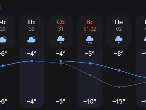 On the night of Thursday, January 29, -9…-14 °C (16…7°F) is expected. During the day, thermometer readings will fluctuate within -3…-8 °C (27…18°F).