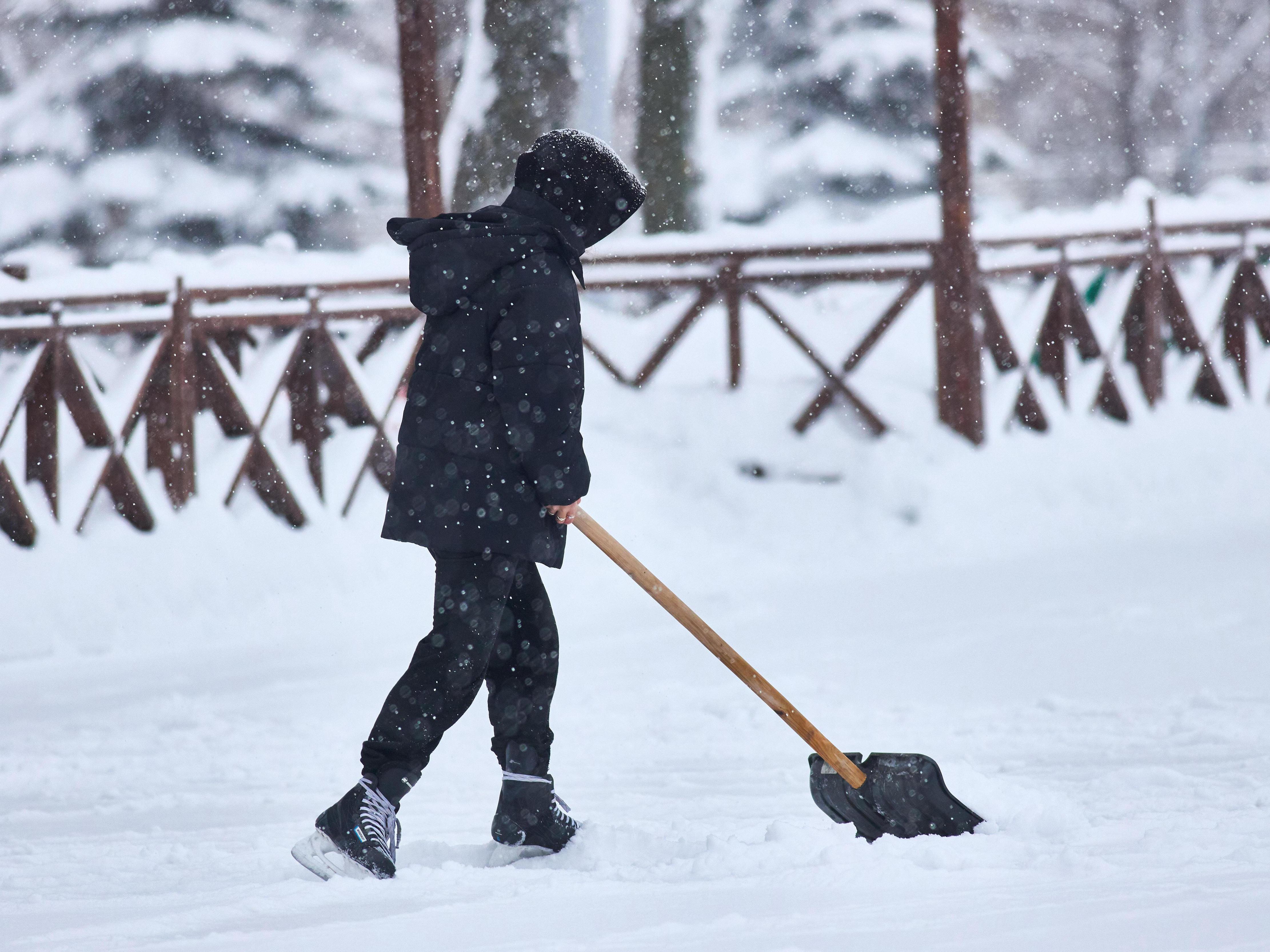 People of all ages take up shovels to clear the snow.