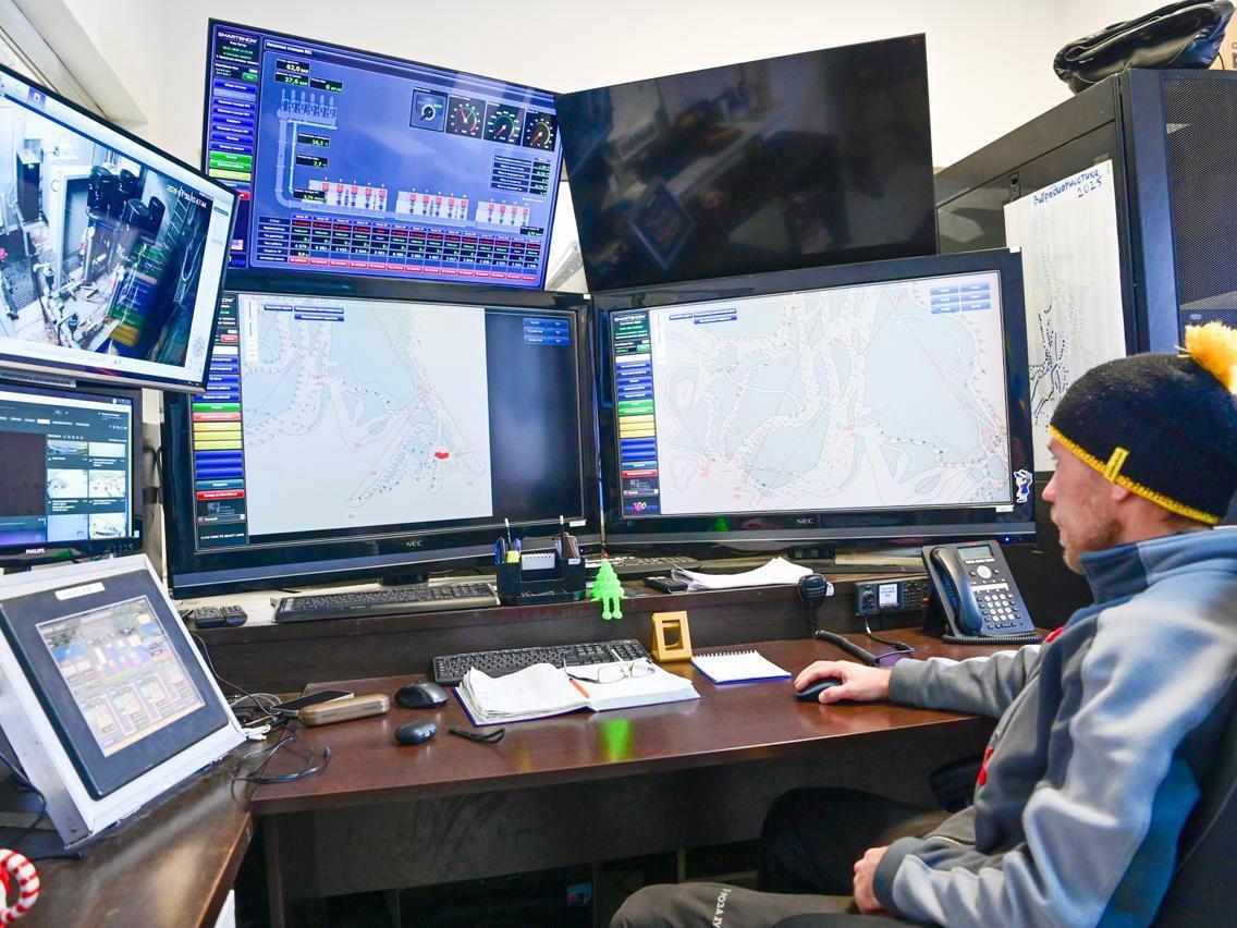 The snow-making process is managed from a single control room, akin to a flight control center. The monitors show all the information about the system—pressure in the pipes, the operation of the pumps, and each of the more than 400 guns. Commands are sent from here into the system. However, people are indispensable. 22 specialists work in the artificial snow department of the «Rosa Khutor» resort. The first requirement when hiring for the «Snow Control Center» is that the person has a higher technical education. That is—a necessary foundation. To train a snow-making specialist who will work easily, it takes about two years on average. You need to know hydraulics, pneumatics, automation, relay circuits, engines, and perform all metalwork. And, of course, confidently stand on skis or a snowboard. When the resort is open and people are skiing, moving between guns and controlling the system can only be done this way.
