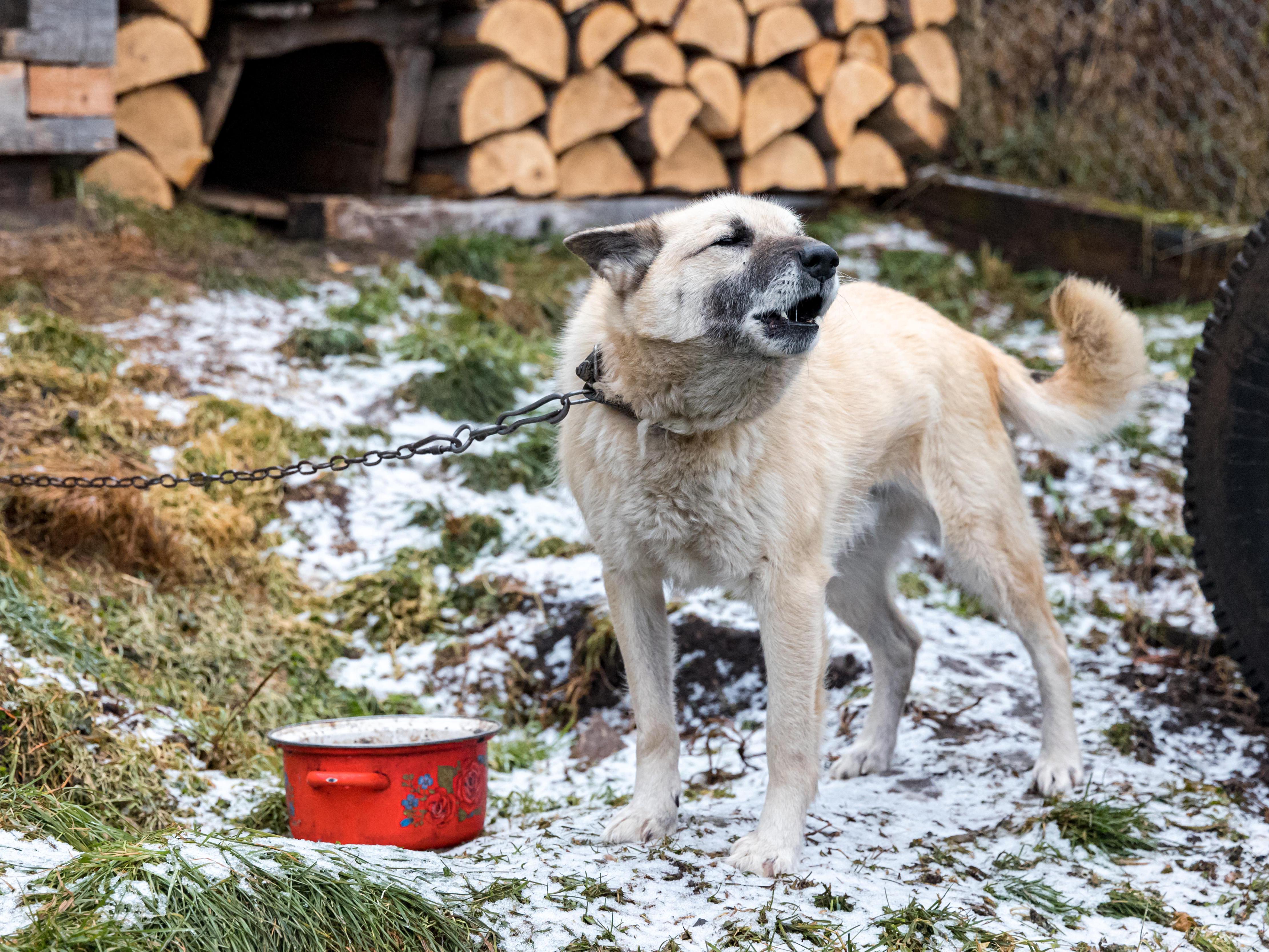 In the garden, a large dog on a chain barks lazily, just to show it«s here.