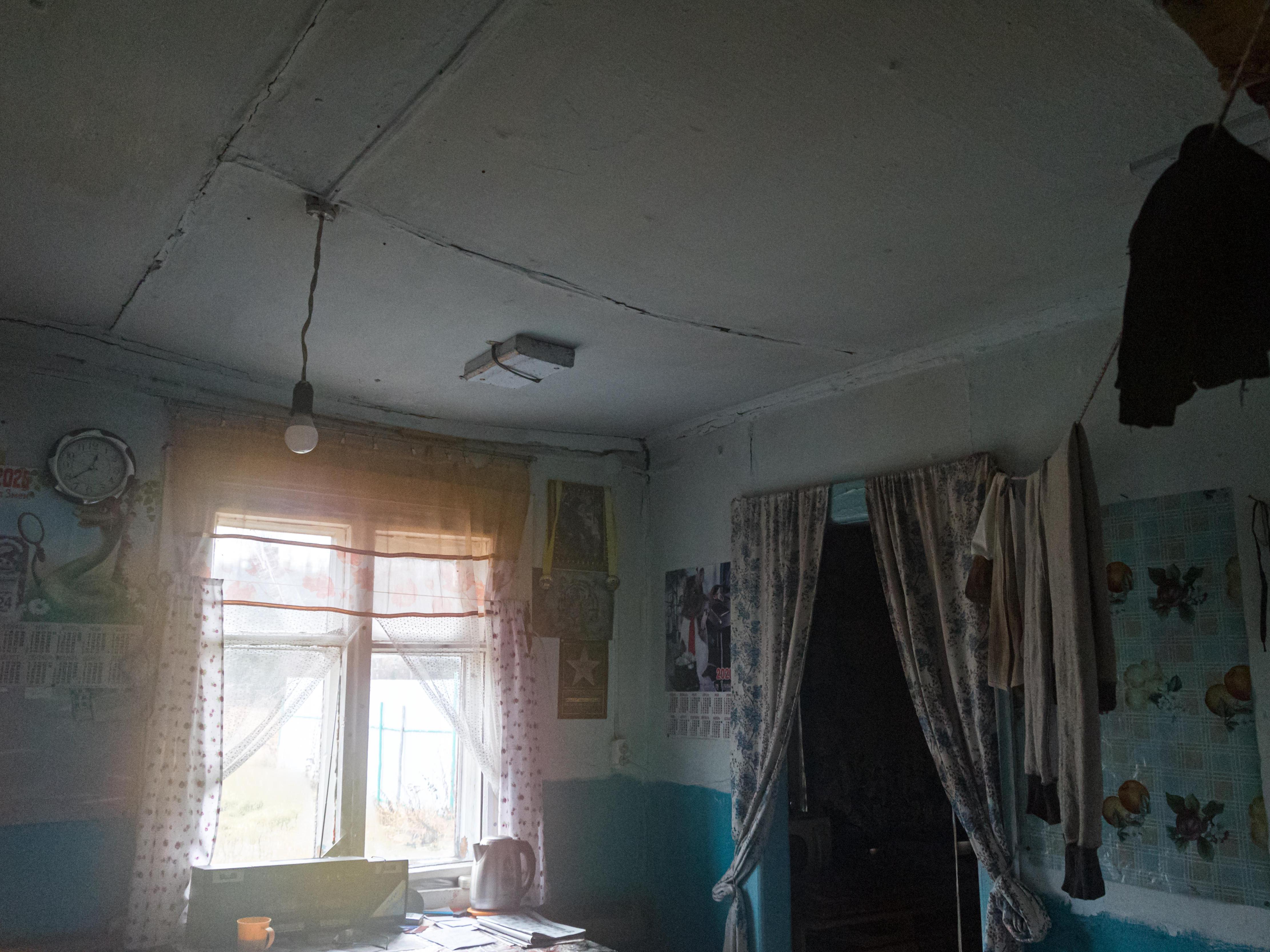 — In my apartment, the ceiling is about to fall. I tied it there to a beam with my own efforts, come on, I«ll show you, — Alexander leads us into the house. — The house is old, belongs to the forestry, and they still can»t do the repairs for me. I temporarily plugged the holes in the roof with plastic wrap. Everything is falling apart. I live until the last, as they say.