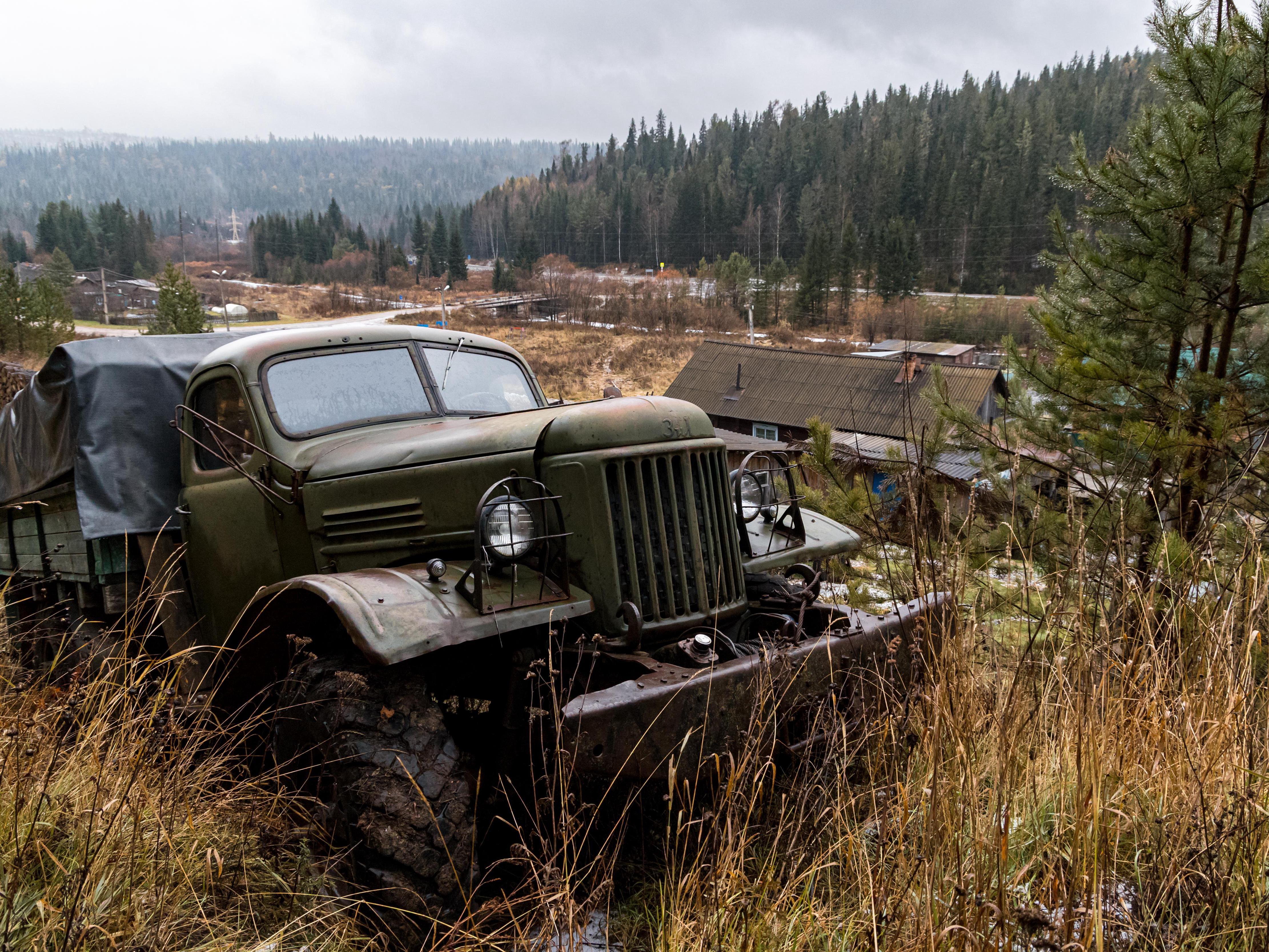 On the rise of her garden plot, we examine a Soviet relic—a four-wheel-drive ZIL-157, from the shaggy years of production. Here it is in place. Tatiana«s husband drives it into the taiga.