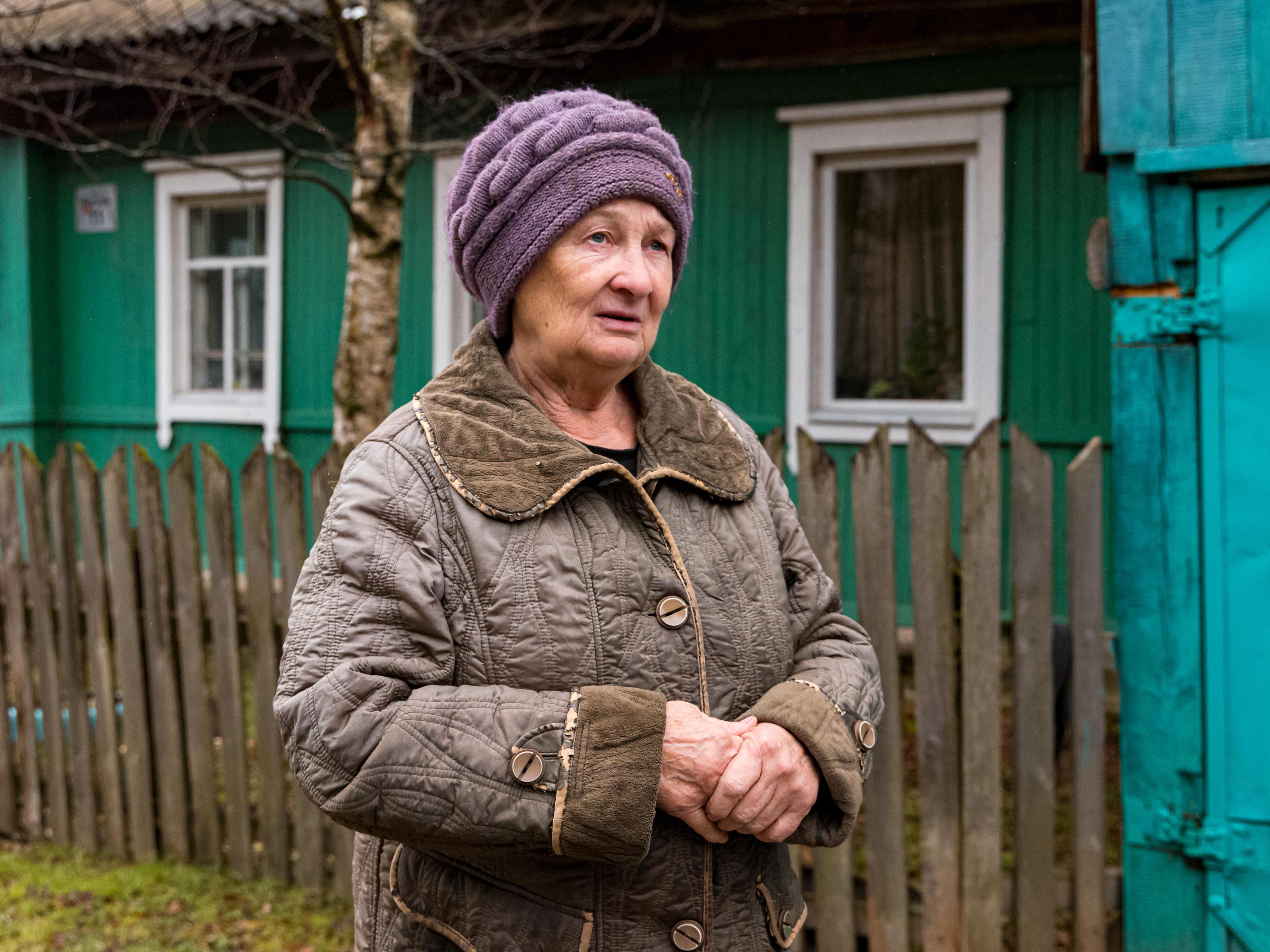 Together with village head Tatiana Demchenko, we walk to the other end of Verkhnyaya Birusa. Past weeds, mossy, falling fences.