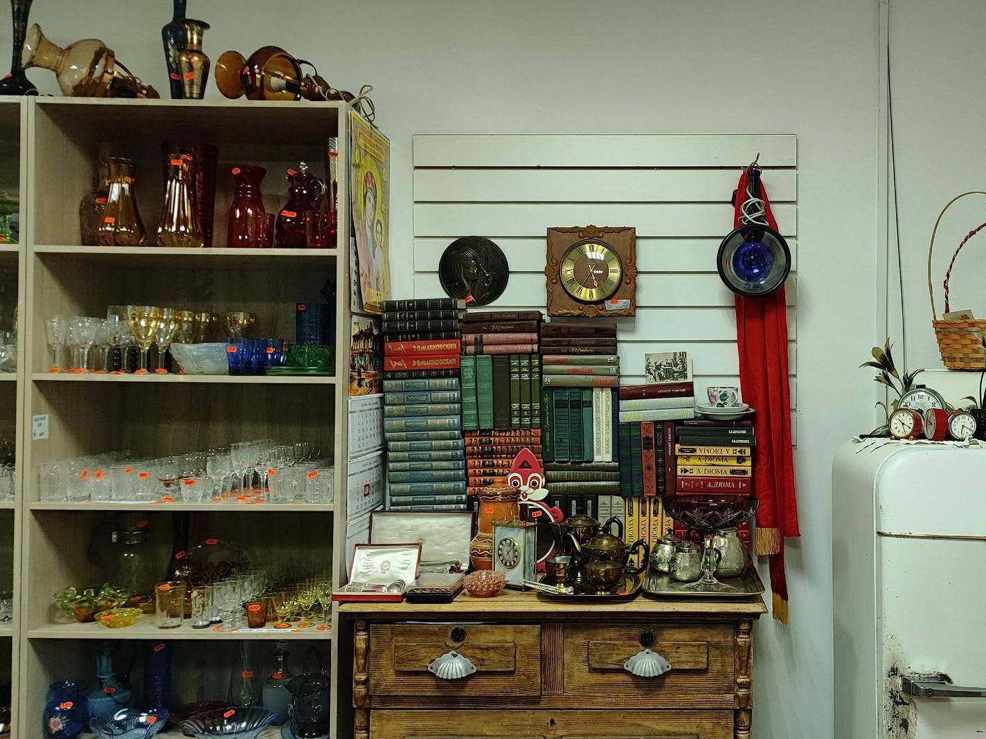 — In the future, I want to turn this shop into a mini-version of a Soviet apartment. At the entrance, put a dressing table with vintage jewelry and perfume, a rack with vintage clothes. Further on, a kitchen area with a refrigerator, stove, kitchen table, and tableware. A living room with these armchairs, a small table, a bookshelf, a Soviet «stenka» (wall unit) with crystal and various knick-knacks. I want people to be able to open any drawer or the refrigerator and find Soviet household items inside, — Alexander shares his plans.