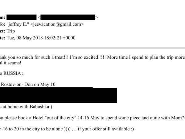 In this message, a person — it is unknown whether male or female — discusses plans for a trip to family in Rostov, which Epstein apparently intended to pay for. Based on the nature of the letter, it can be assumed that a girl wrote it. The message states that a ticket to Rostov is needed for May 10, 2018. The sender plans to spend time with their grandmother, mother, and then alone.