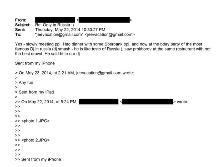 This message was sent to Jeffrey Epstein from Russia in mid-May 2014.