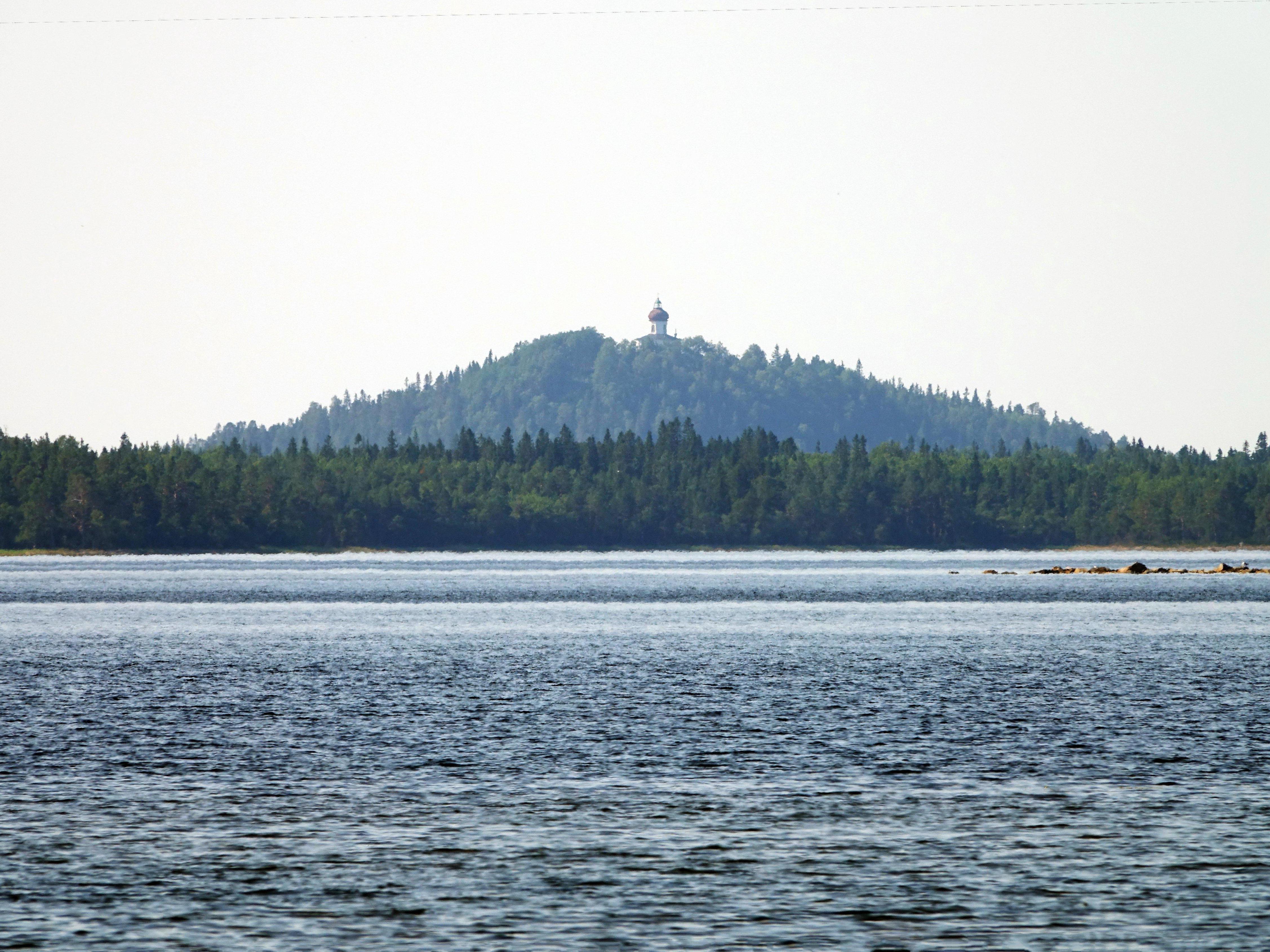 Further, Yevgeny«s path lay to the northern part of the island, where the large Sosnovaya Bay is located. From here, the highest point of Solovetsky Island — Mount Sekirnaya, about 80 meters (262 feet) high — is clearly visible.