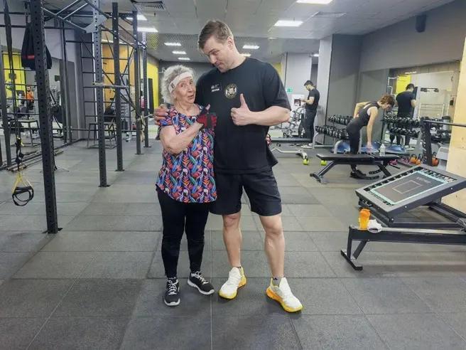 In the gym, it’s impossible not to notice 78-year-old Natalya from Surgut: headband, fashionable sportswear, special gloves — the full set. She performs circuit training, balance exercises, and much more that not every gym visitor can handle.