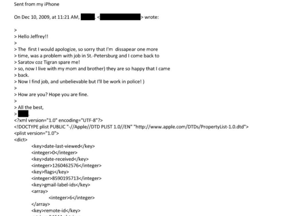 According to her, her family is happy that she returned. The unknown woman added that she is now looking for work and, «as incredible as it may seem,» will work in the local police. She also asked Jeffrey if everything was going well with him and wished him all the best. Epstein responded to the message: «I understand. Do you still want to come visit? I»ll arrange everything.«