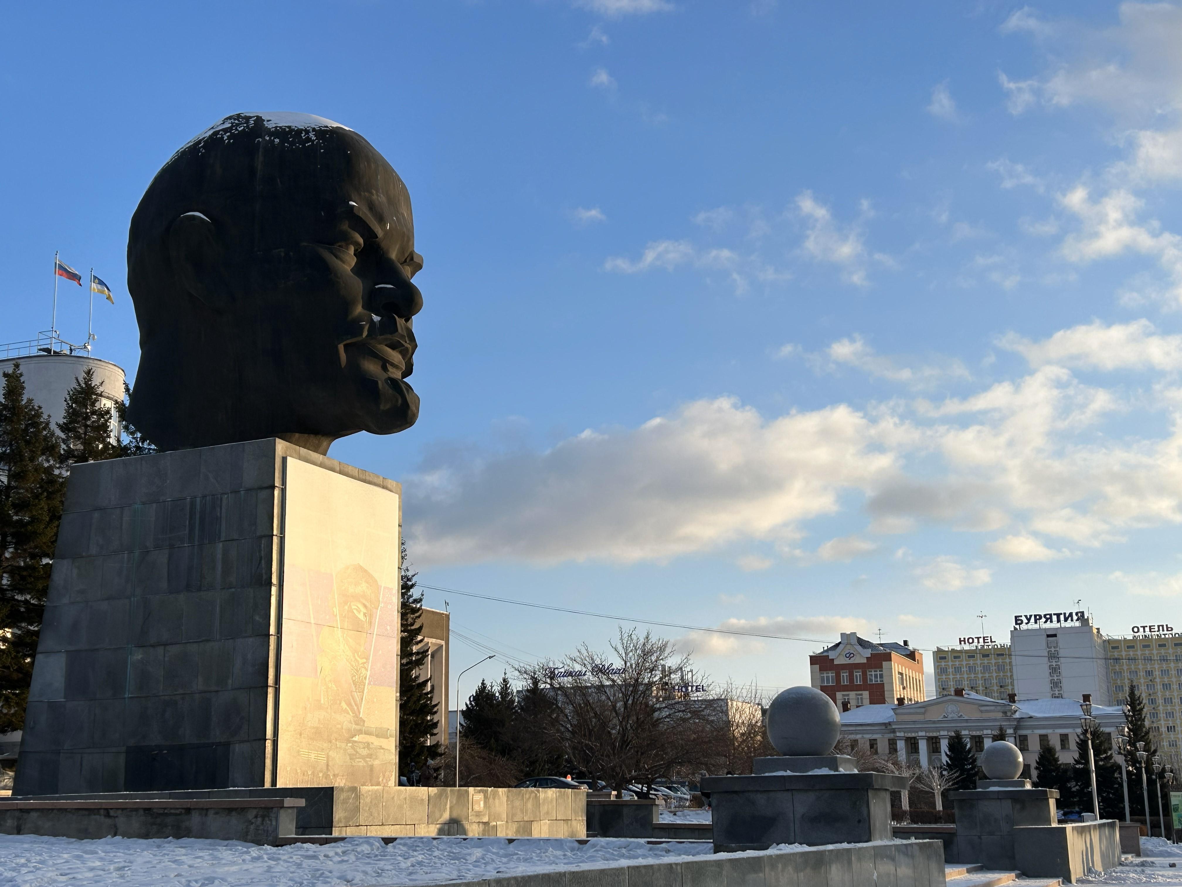 No wonder his 40-ton — the largest in Russia — granite head with a heavy chin has been the center of attraction on the main square of Buryatia for over half a century.