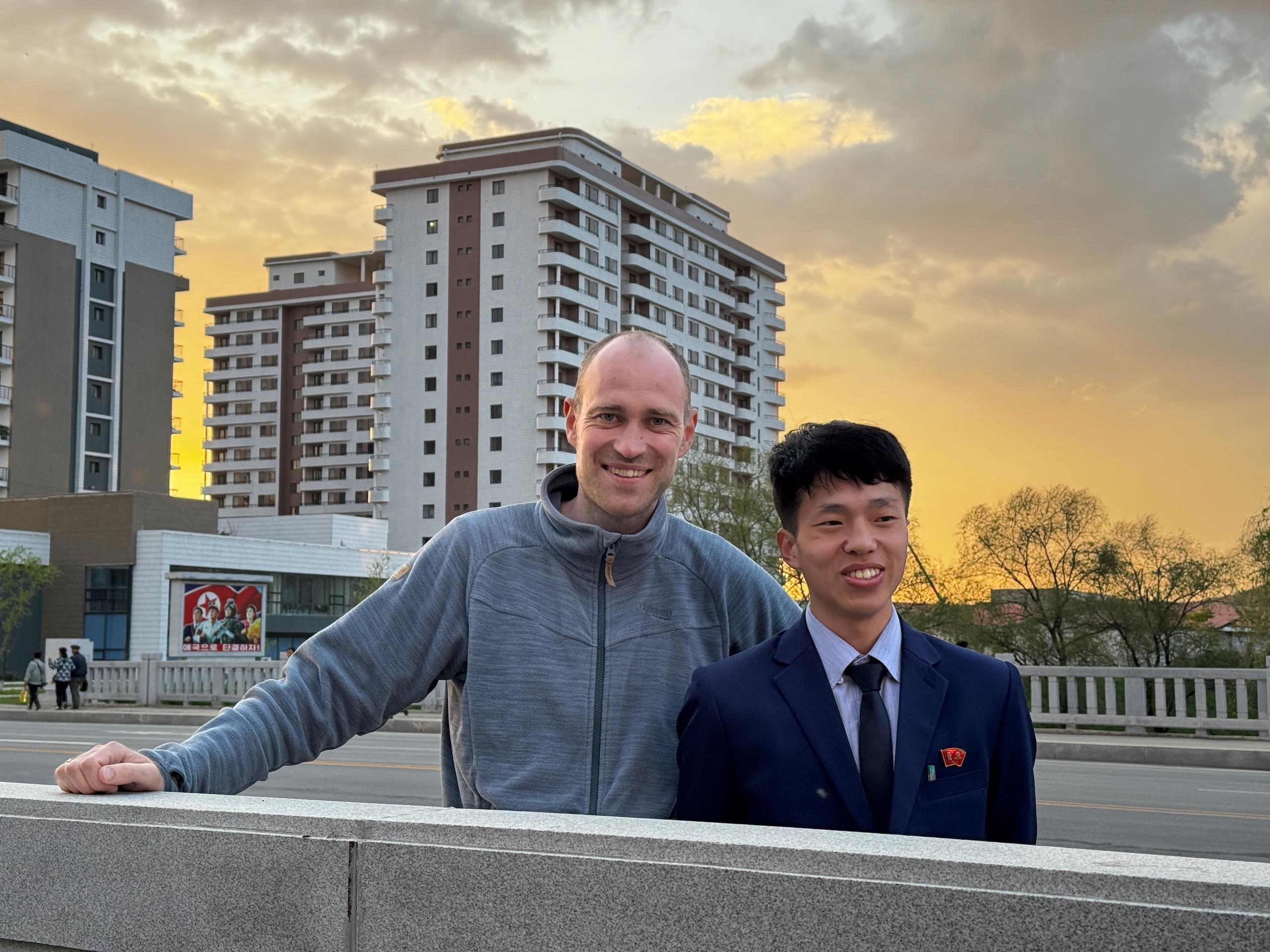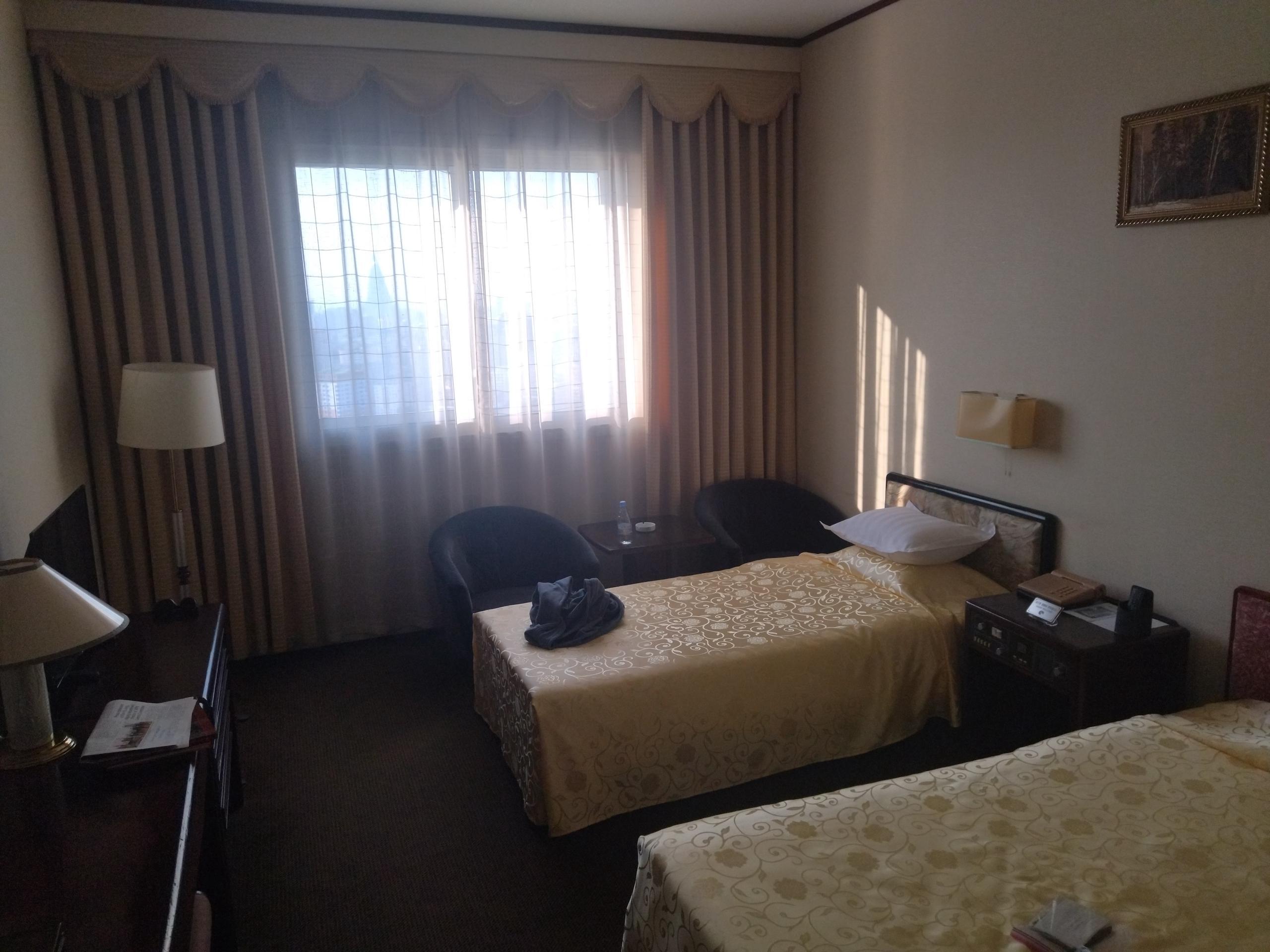 Most nights were spent in a 47‑story hotel in Pyongyang.
