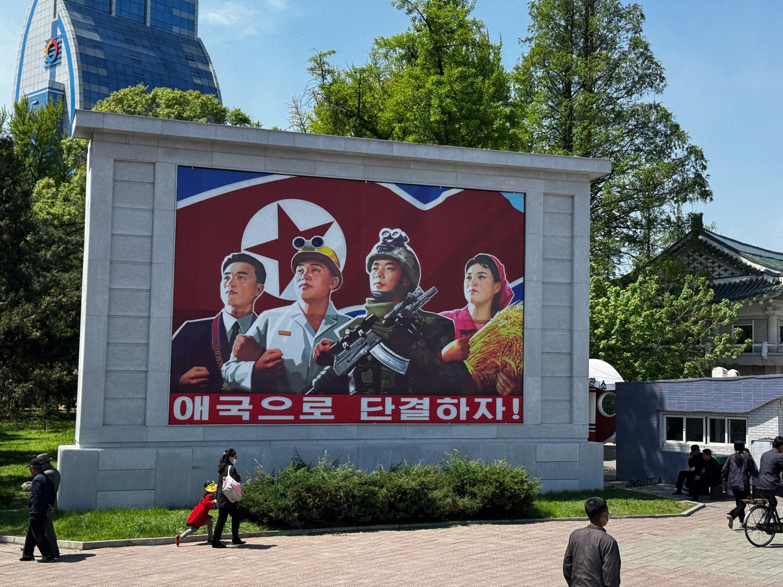 Speaking of control. Outside the hotel you may move only when accompanied by a guide, an interpreter, a national security officer, and a representative of the tour company. They monitor your every action — for example, telling you what you may photograph and what you may not. If they notice you shot something prohibited, they’ll demand you delete it. You may not photograph the military or construction sites, and when shooting portraits of the Leader you must ensure the image fits entirely in the frame.