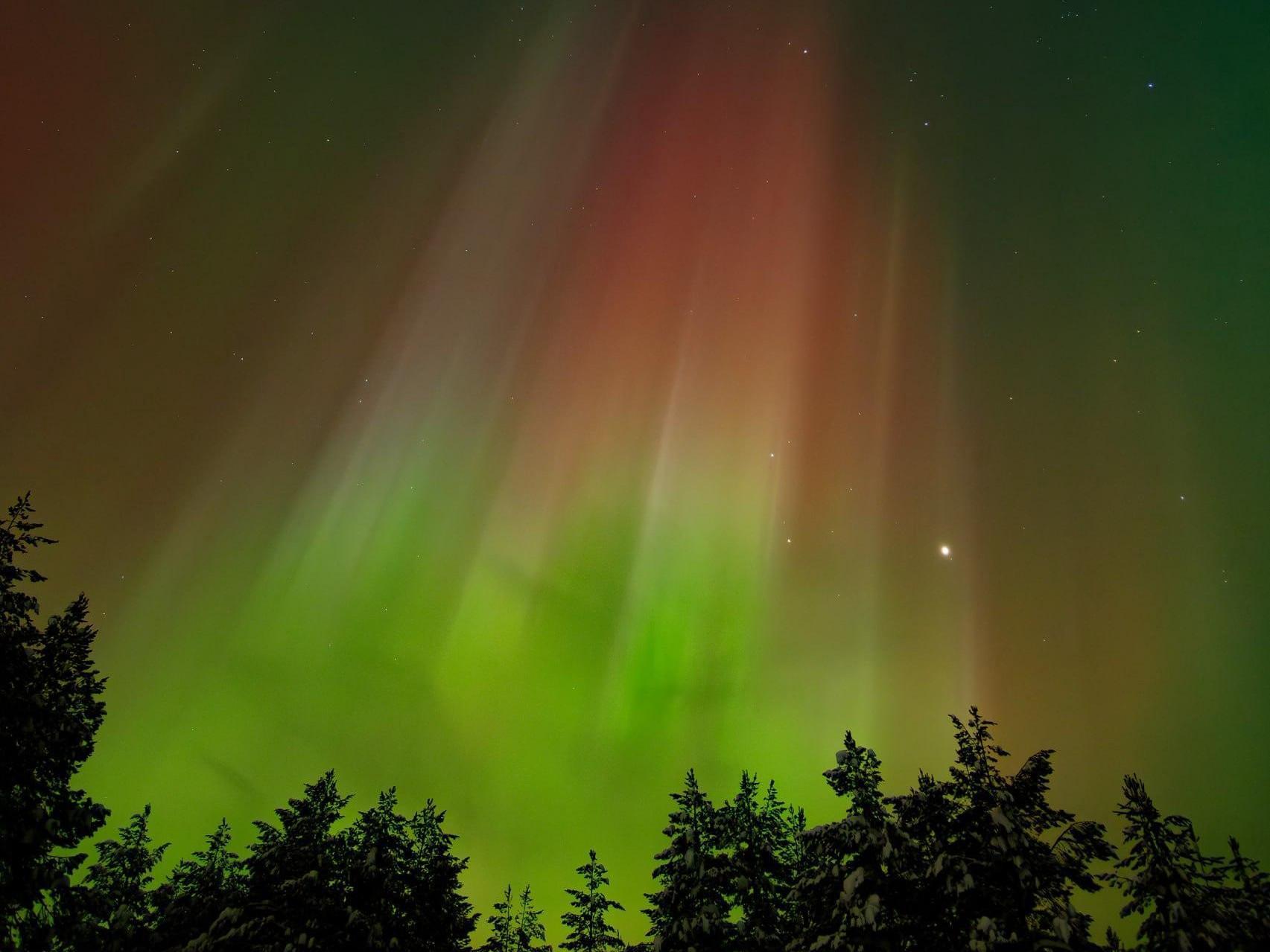 Regarding visibility in Perm Krai, as is often the case, residents of the north were luckier — it was already quite frosty and clear there. In Krasnovishersk, clear figures were seen that were «drawn» by the magnetic storms.