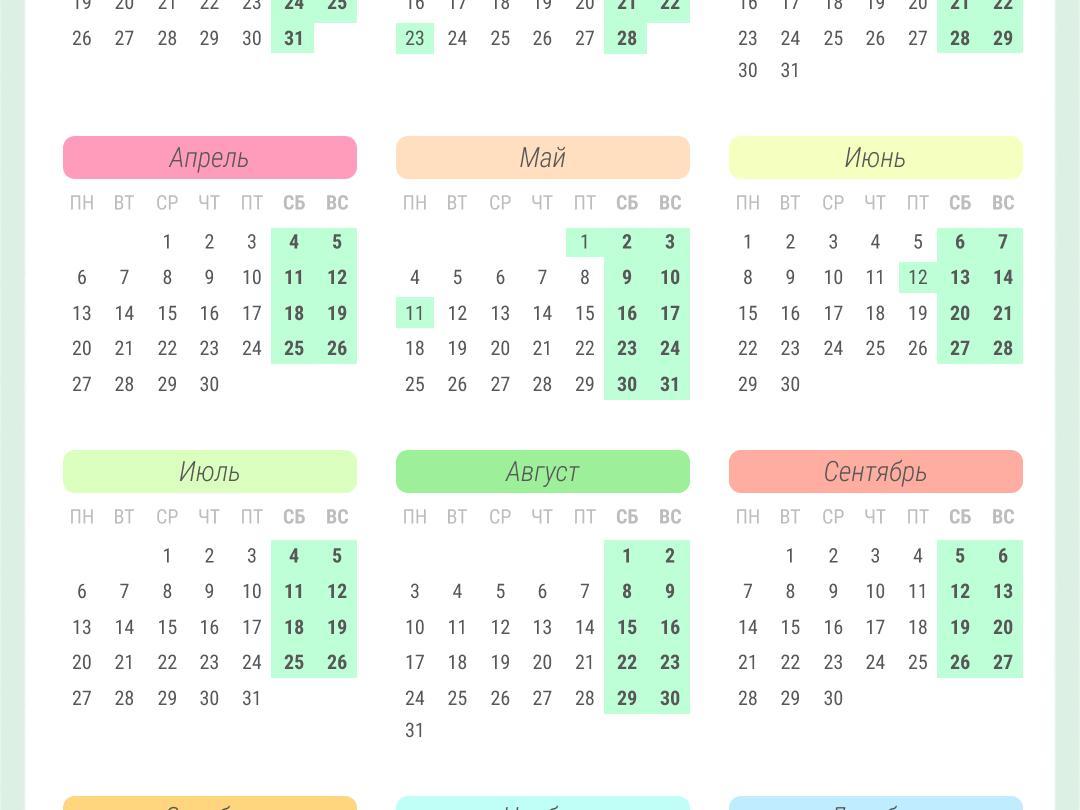 In June, we«ll be lucky too: the work week will last from the 8th to the 11th, and the weekend – from the 12th to the 14th.