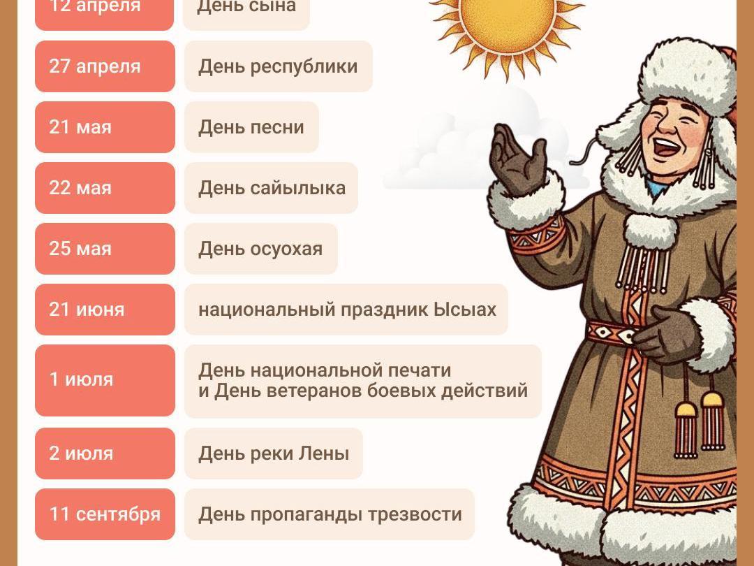 25 May — Day of Osuokhai, another fresh holiday established in 2023. Osuokhai is the national circular dance of the Yakuts, included in the list of 100 masterpieces of Russia«s intangible heritage.